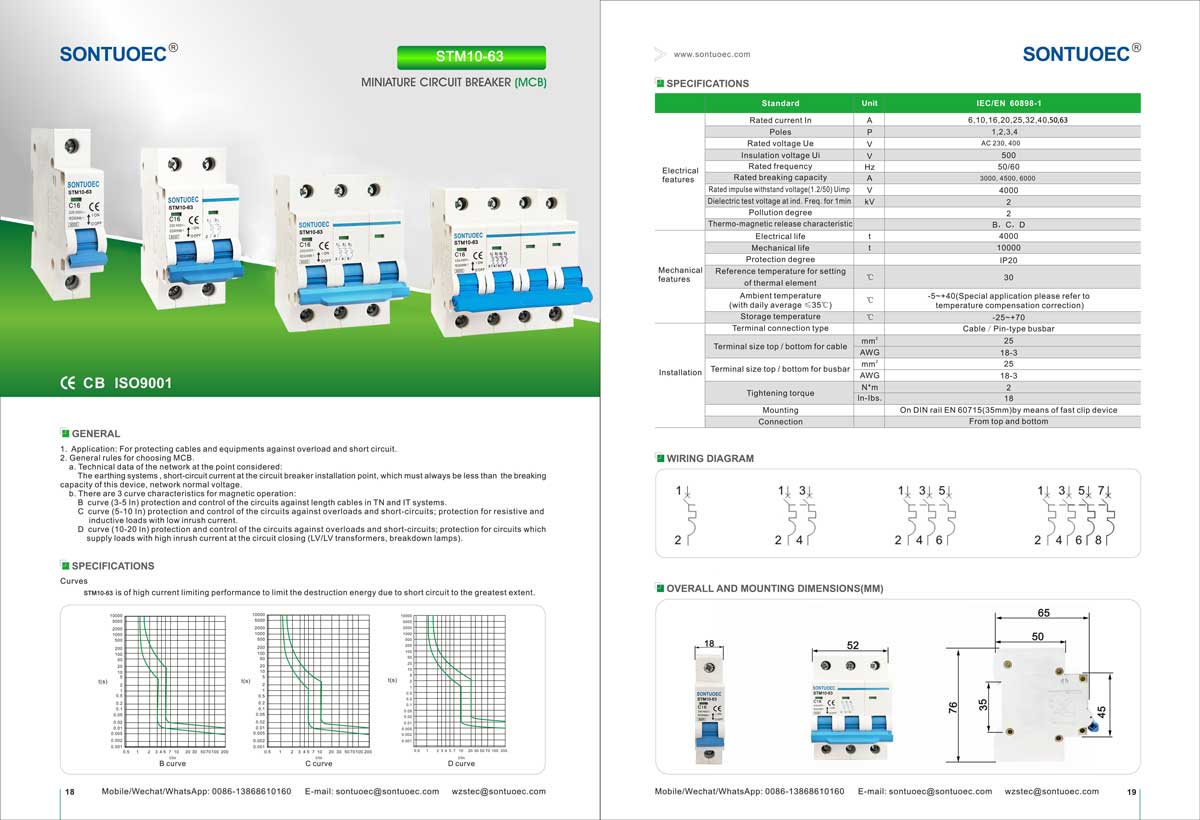 SONTUOEC એ વિવિધ નાના વિદ્યુત ઉપકરણોના ઉત્પાદનમાં વિશેષતા ધરાવતા ચાઈનીઝ સપ્લાયર્સ/ઉત્પાદકોમાંનું એક છે STM10-63 સિરીઝ હાઈ બ્રેકિંગ મિનિએચર સર્કિટ બ્રેકરમાં સ્ટ્રક્ચર એડવાન્સ્ડ, પરફોર્મન્સ વિશ્વસનીય, બ્રેકિંગ કેપેસિટી ઊંચી, દેખાવ ભવ્ય અને તેના શેલ અને ભાગો ઈમ્પેક્ટ રેઝિસ્ટન્સ, મજબૂત ફ્લેમ-ફિચર સાથે મટિરિયલથી બનેલા છે. તે 50 અથવા 60 આવર્તન, Ue 400V અને નીચે, Ui 63A અને નીચેની પાવર સિસ્ટમ માટે યોગ્ય છે. તે IEC60898.1 અને GB10963.1 ધોરણોને અનુરૂપ છે.