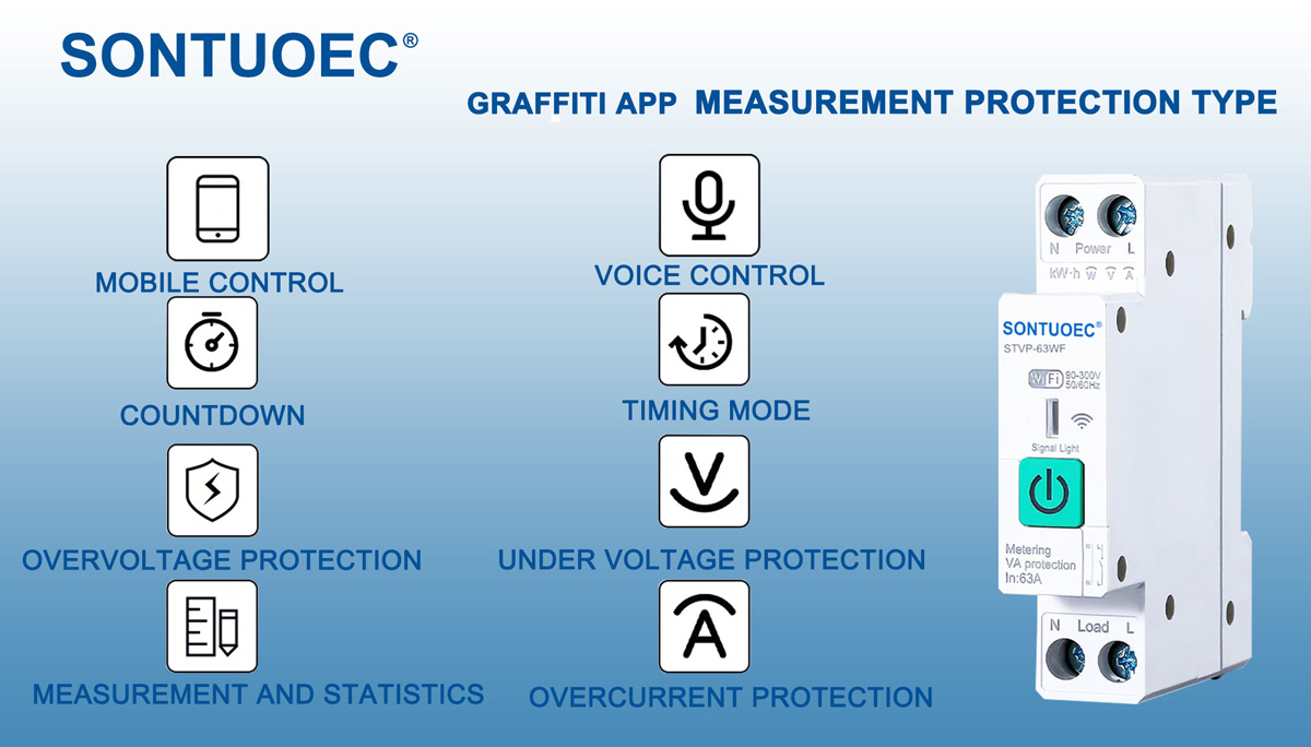 સોન્ટુઓસી સપ્લાયર એસટીવીપી -63 ડબ્લ્યુએફ શ્રેણી એ એક બુદ્ધિશાળી રેલ પ્રકારની વાઇફાઇ વોલ્ટેજ પ્રોટેક્ટર છે જે energy ર્જા મીટરિંગ, બુદ્ધિશાળી રિમોટ કંટ્રોલ, સલામતી સંરક્ષણ, સમય, રિમોટ ઓપનિંગ અને ક્લોઝિંગ, નેટવર્ક કમ્યુનિકેશન, વગેરે જેવા કાર્યોને એકીકૃત કરે છે. તે સ્માર્ટ હોમ સિસ્ટમ્સ માટે યોગ્ય છે. વ્યક્તિગત દ્રશ્ય સેટિંગ્સ અને energy ર્જા બચત સંચાલન પ્રાપ્ત કરવા માટે વપરાશકર્તાઓ મોબાઇલ એપ્લિકેશન દ્વારા ઘરેલુ ઉપકરણોને દૂરસ્થ રૂપે નિયંત્રિત કરી શકે છે; પ્રમાણમાં નવા પ્રકારનાં બુદ્ધિશાળી ઉપકરણથી સંબંધિત છે જેનો ઉપયોગ વ્યવસાયિક, office ફિસ અને અન્ય સ્થળોએ પણ થાય છે, કેન્દ્રિય અને બુદ્ધિશાળી વીજળી નિરીક્ષણ અને નિયંત્રણમાં, વ્યવસ્થાપન કાર્યક્ષમતામાં સુધારો, અને આધુનિક બુદ્ધિગમ્ય જીવન અને કાર્યની વિવિધ જરૂરિયાતોને પૂર્ણ કરે છે.