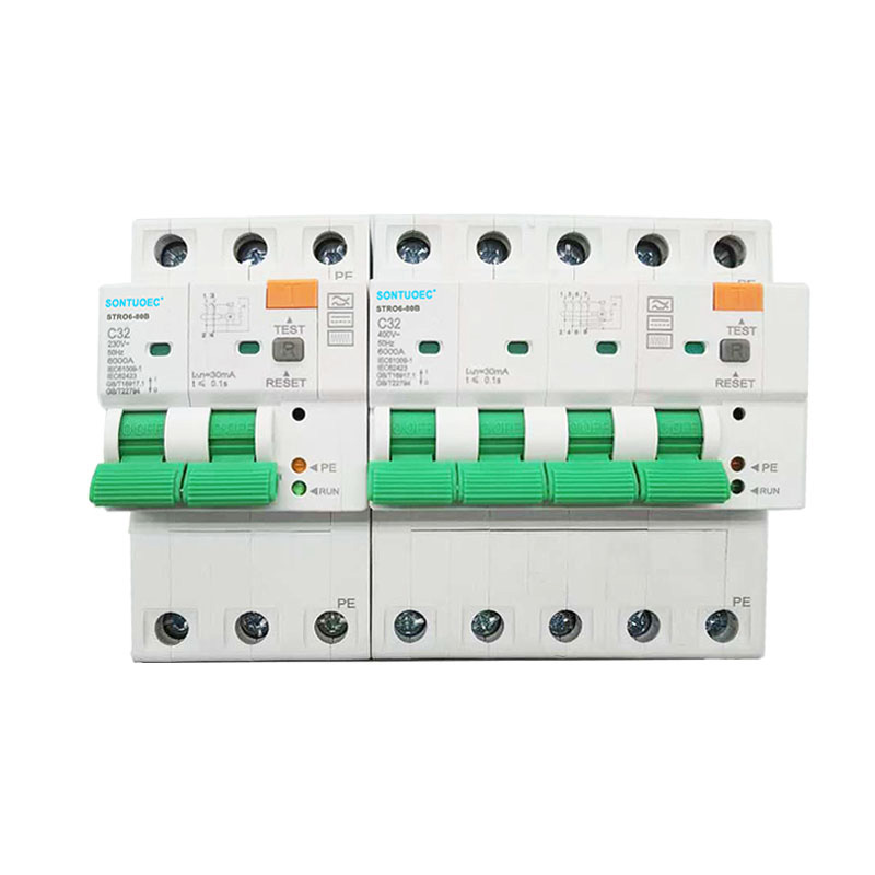 ઓવરલોડ પ્રોટેક્શન: જ્યારે સર્કિટમાં વર્તમાન STRO6-80B RCBO ના રેટ કરેલા મૂલ્ય કરતાં વધી જાય છે, ત્યારે સર્કિટ અને ઉપકરણોને ઓવરહિટીંગથી બચાવવા માટે તે આપમેળે સર્કિટને કાપી નાખશે, આમ આગ અને નુકસાનને ટાળશે.